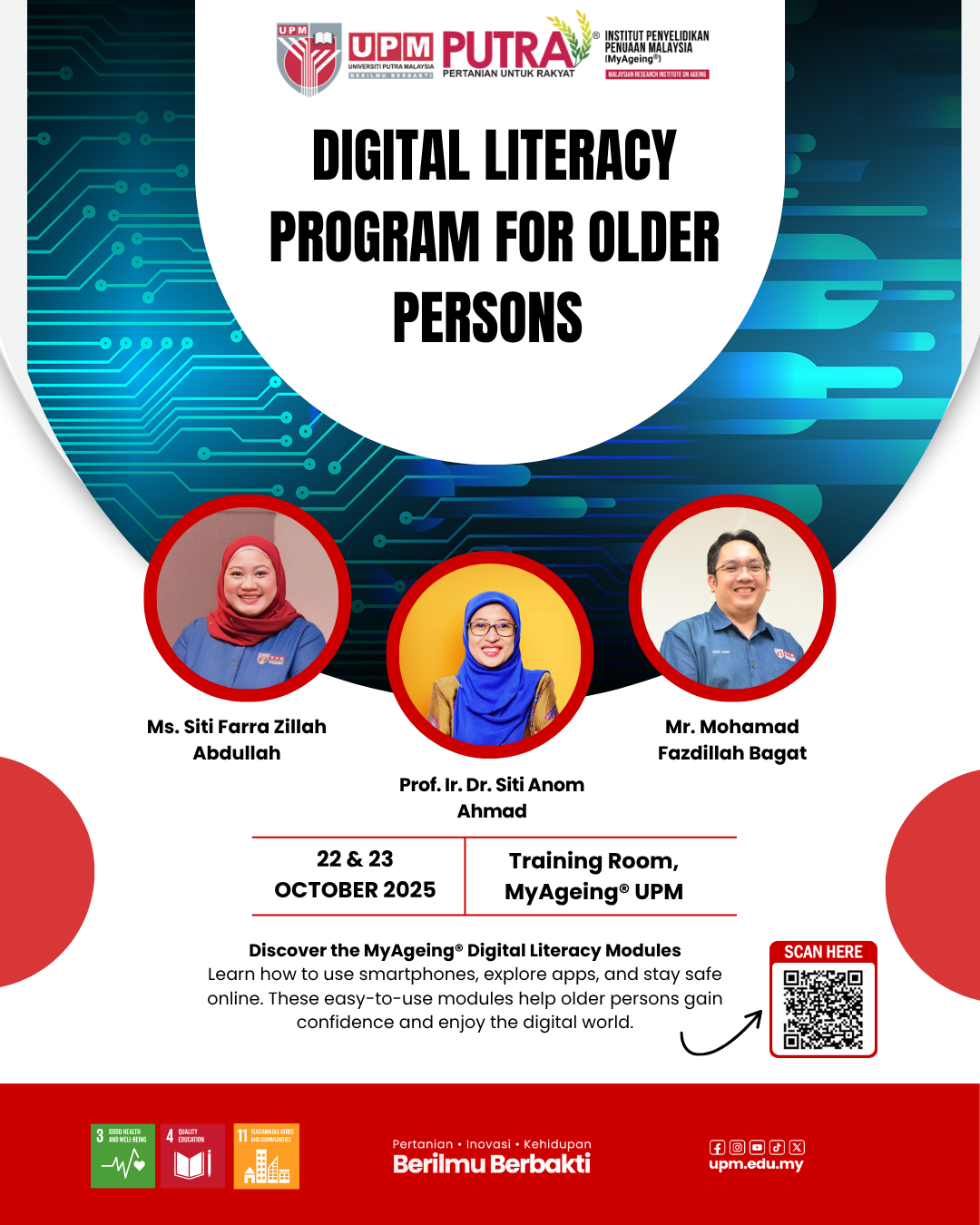 Serdang, 22 October – MyAgeing® is hosting a two-day event on 22 and 23 October as part of its Digital Literacy Program for Older Persons, an initiative aimed at equipping older Malaysians with essential digital skills. The program enables participants to confidently navigate online platforms and stay connected with their communities.